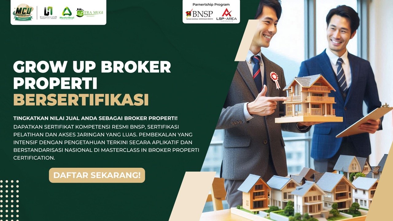 –Training Intensive MasterClass Broker Property Certified MCU. (Pelatihan 3x dan pemberian modul dasar SKKNI broker Properti bersertifikat pelatihan)
